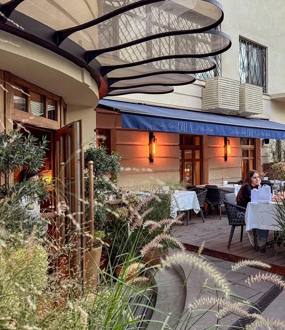 Interior design project by Belenko Design Studio (2024). Sicilian-inspired restaurant in Dnipro, Ukraine. Services: concept development, interior design, lighting design. Design features: wooden accents, floral-patterned furnishings, ornate chandelier lighting, round tables with flower arrangements.