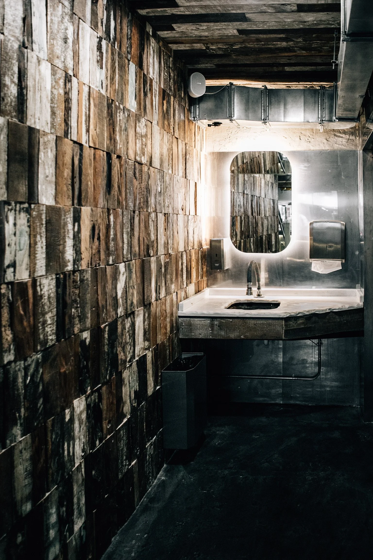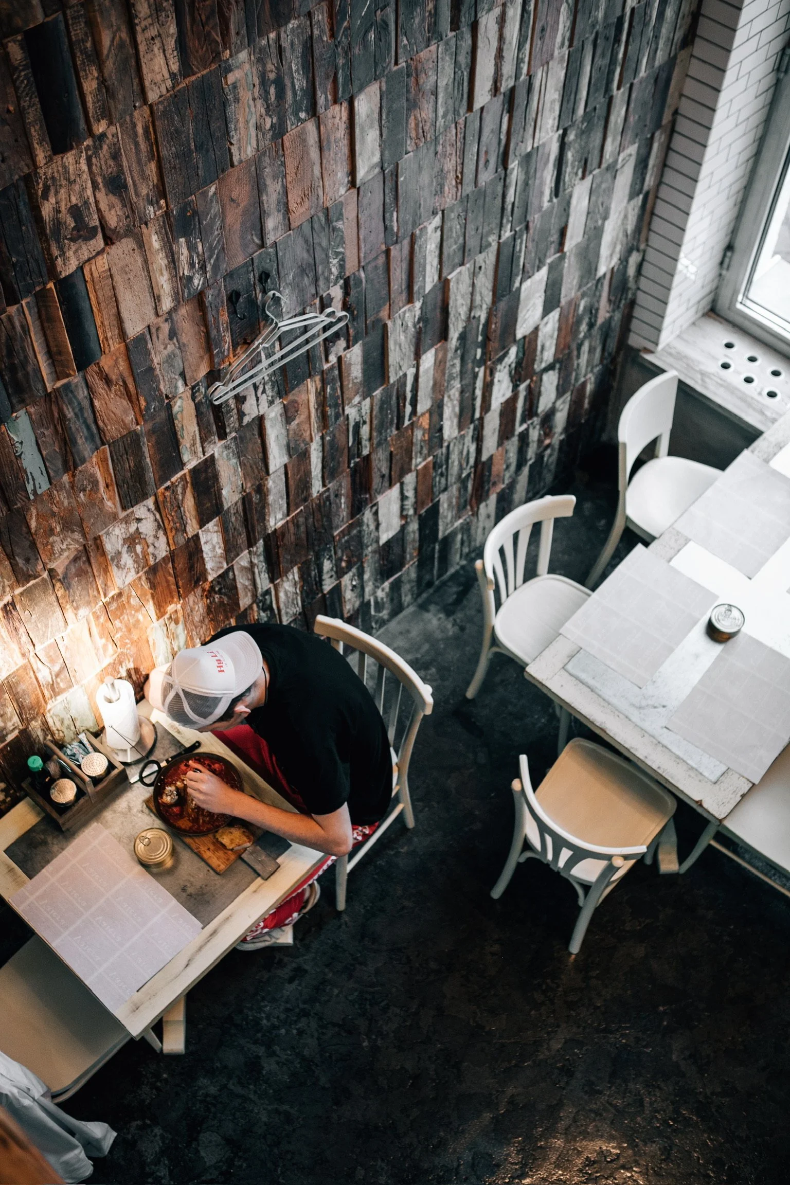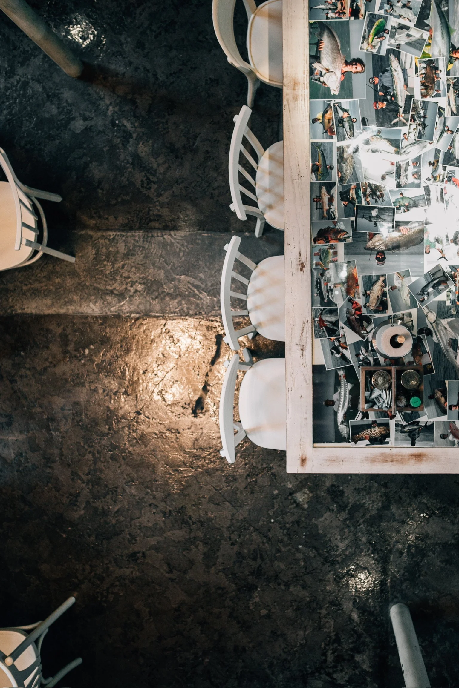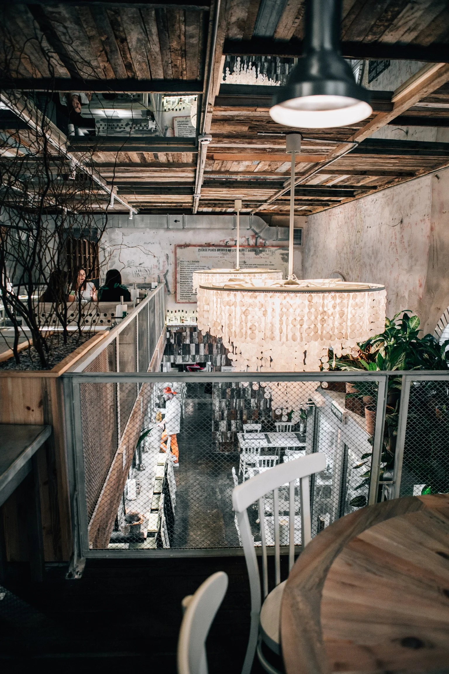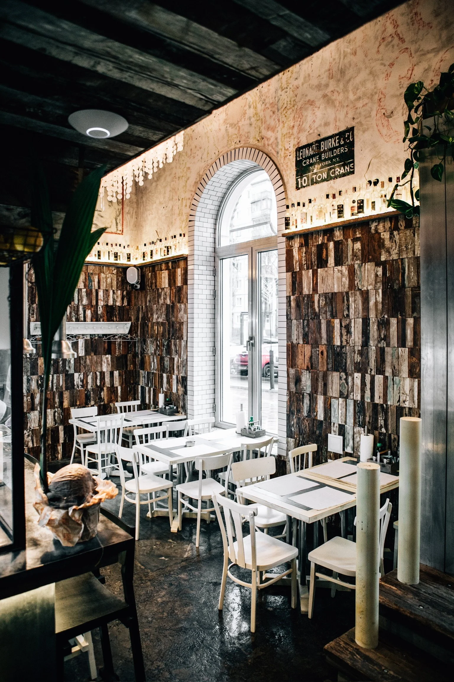 Interior design project by Belenko Design Studio (2018). Seafood restaurant, Kyiv, Ukraine. Services: concept, interior design, lighting design. Design features: custom chandeliers, rustic wooden ceilings, contemporary furnishings.
