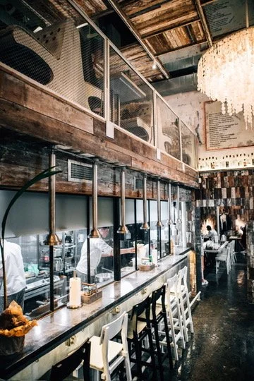 Interior design project by Belenko Design Studio (2018). Seafood restaurant, Kyiv, Ukraine. Services: concept, interior design, lighting design. Design features: custom chandeliers, rustic wooden ceilings, contemporary furnishings.