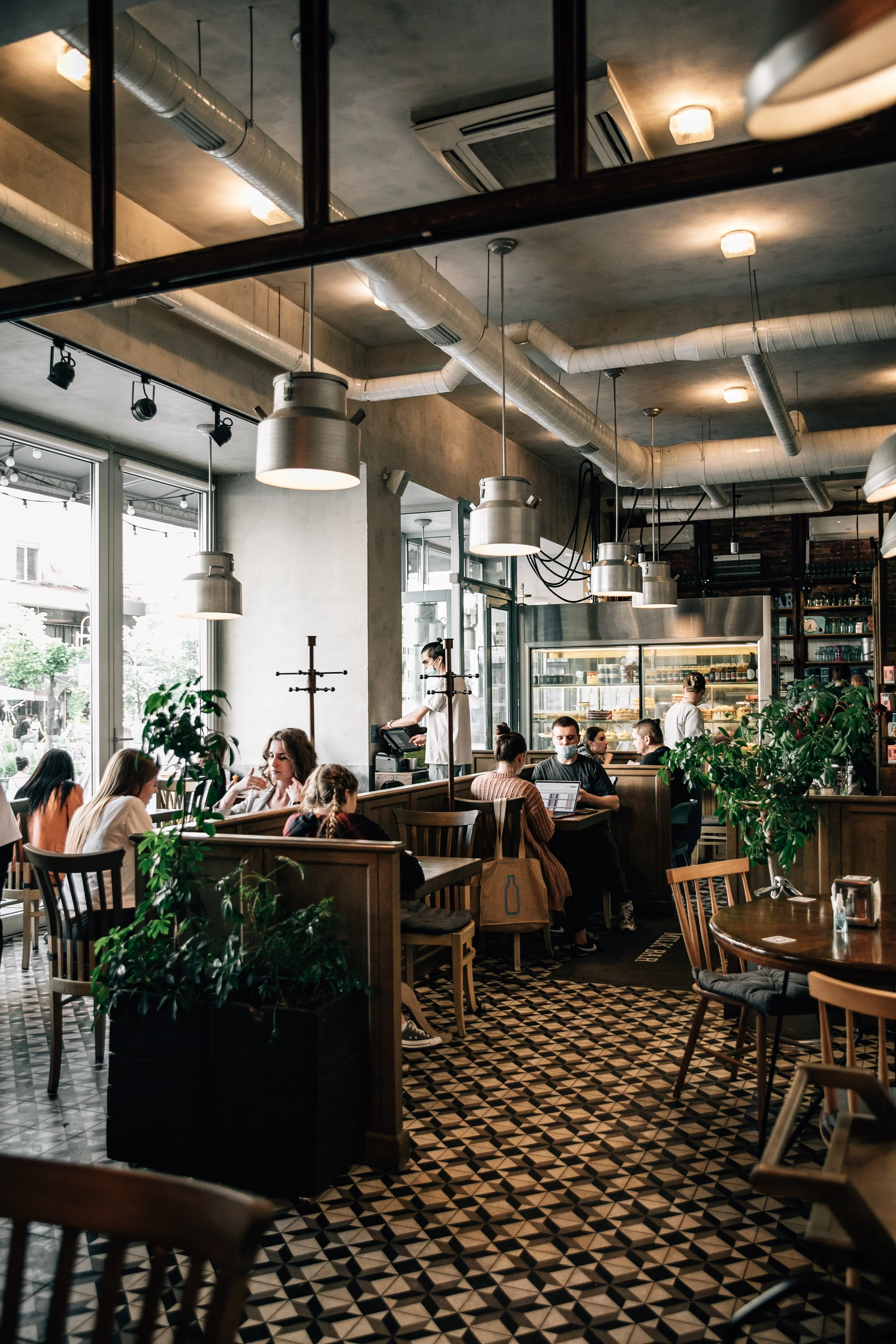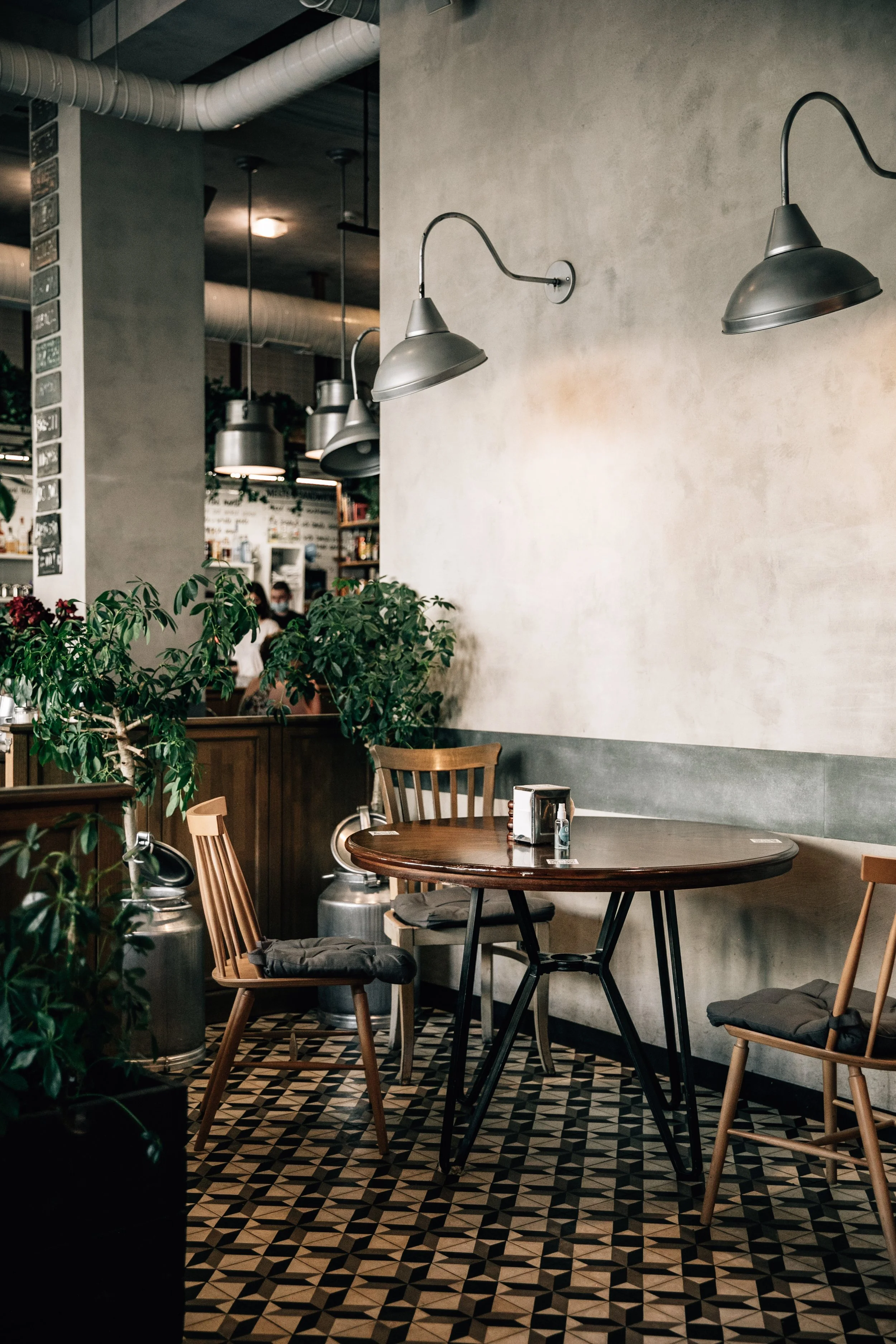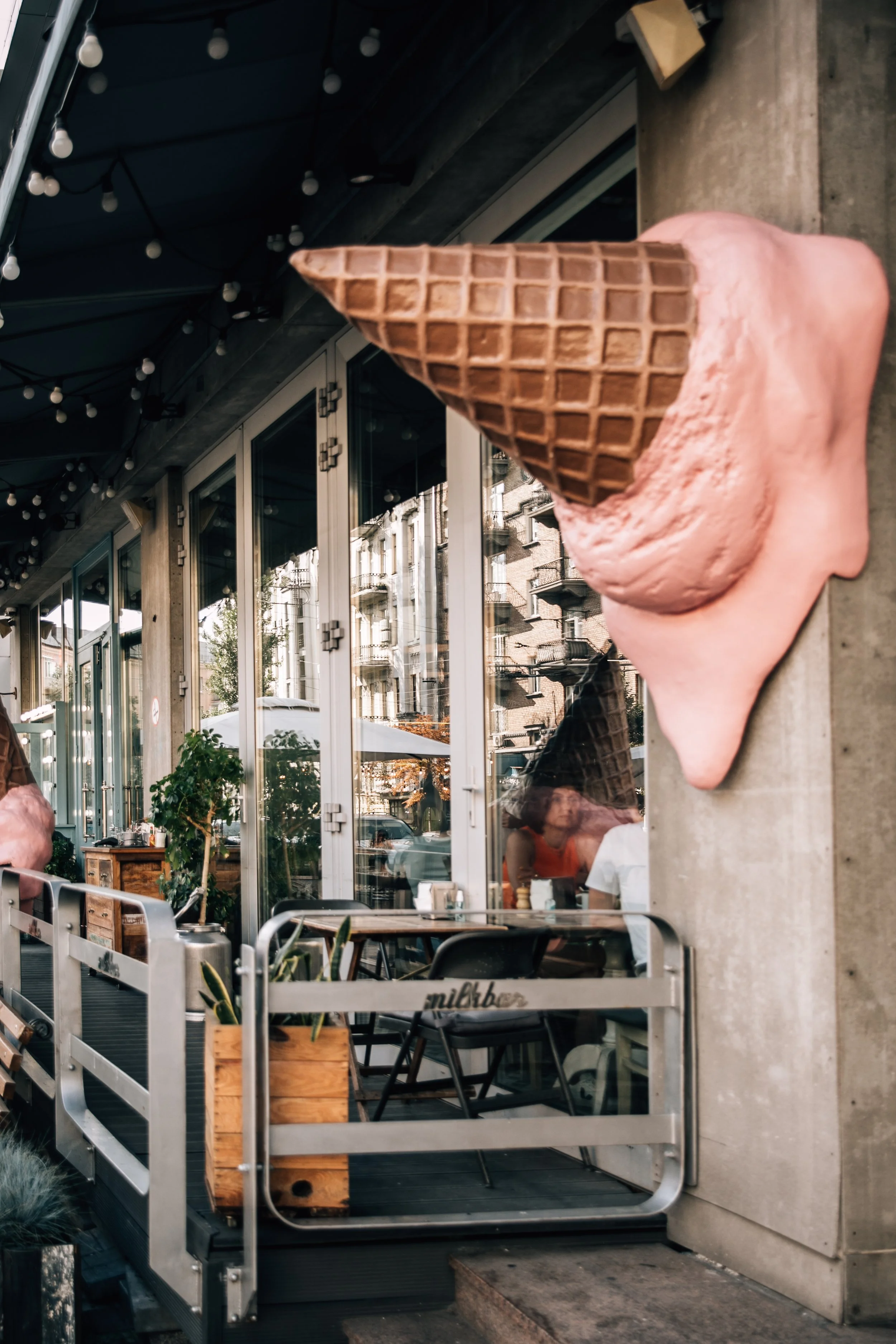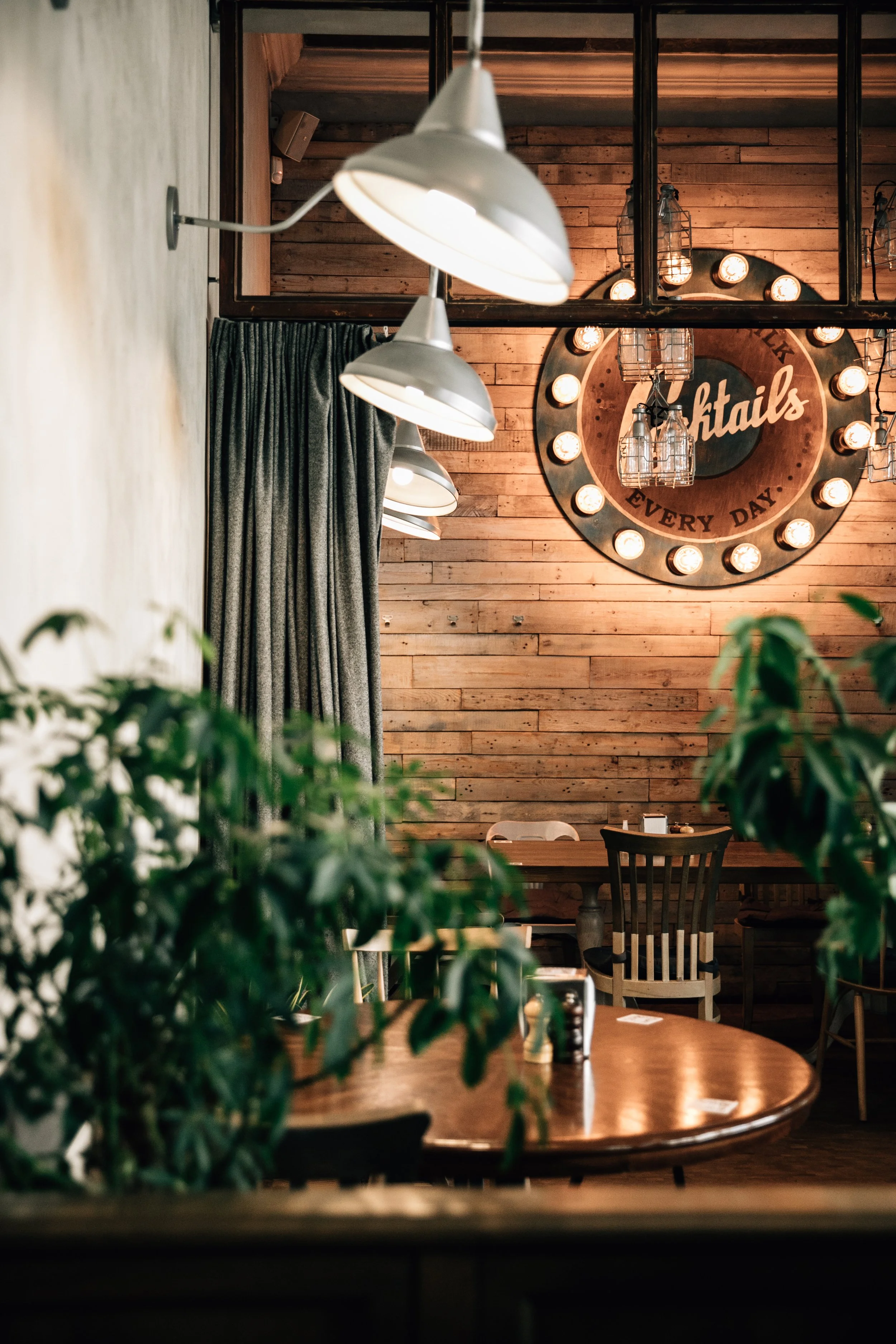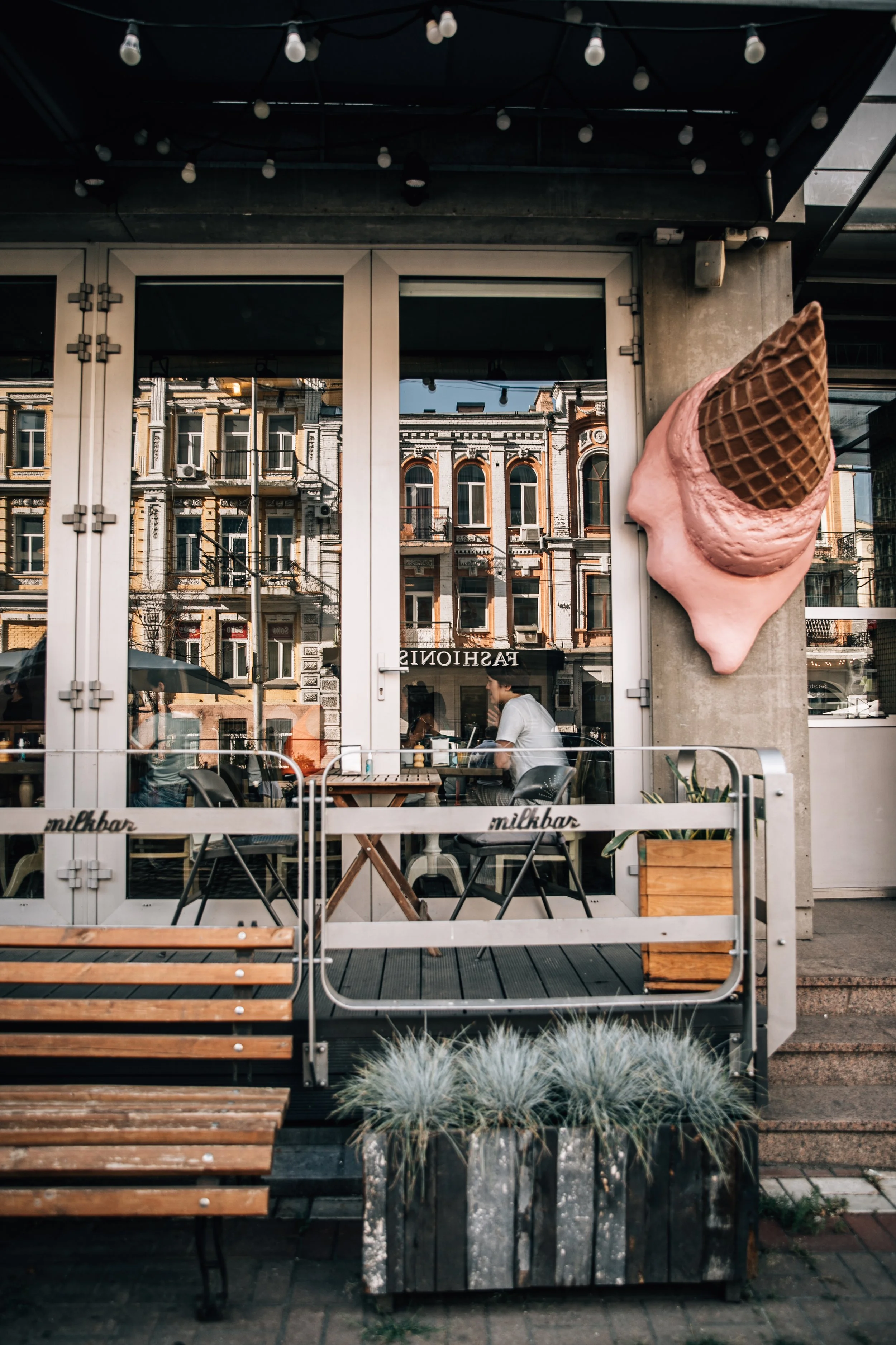Interior design project by Belenko Design Studio (2014). Cafe and bar, Kyiv, Ukraine. Services: concept, interior design, branding. Design features: rustic-modern aesthetic, wooden elements, decorative signage, welcoming cafe atmosphere.
