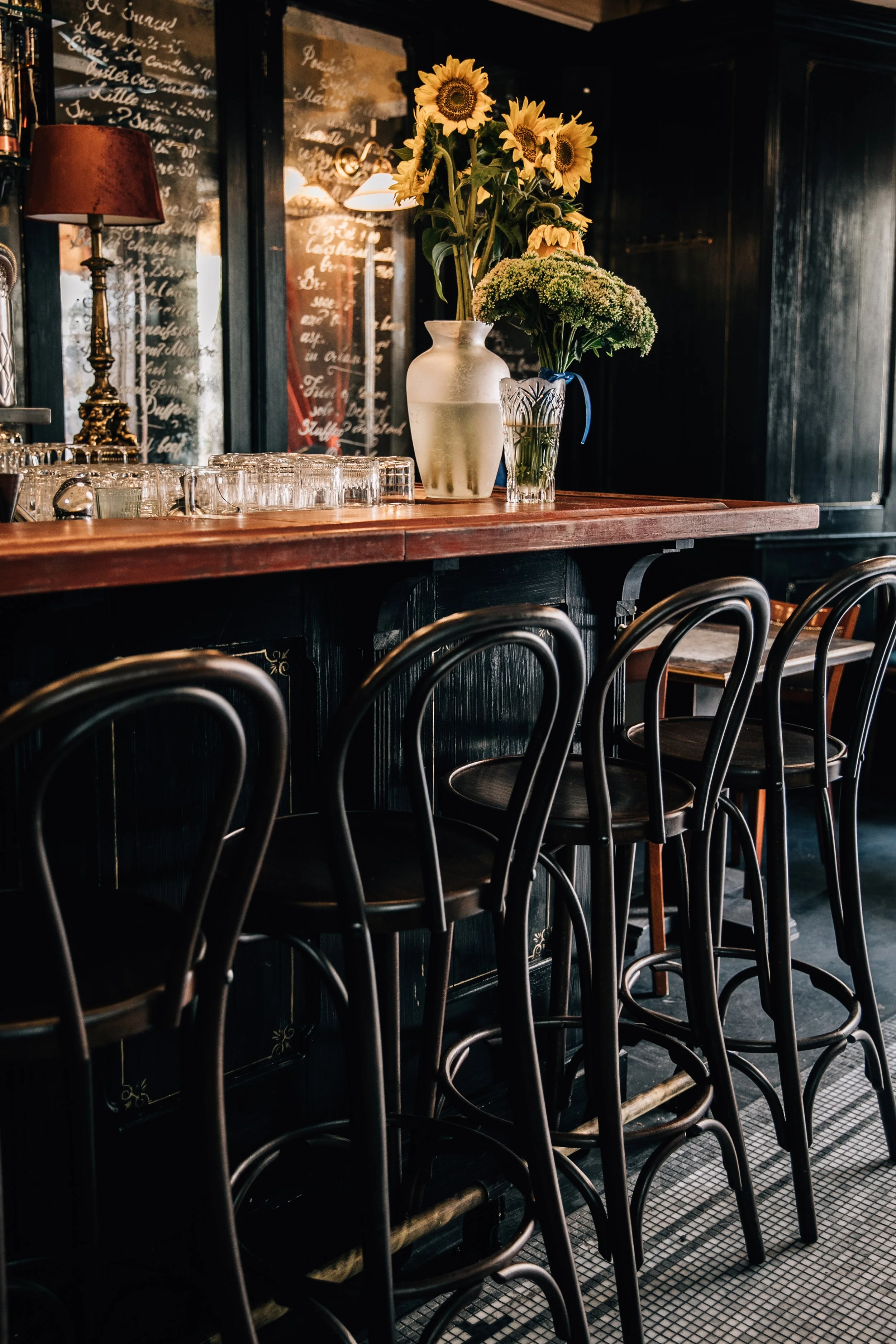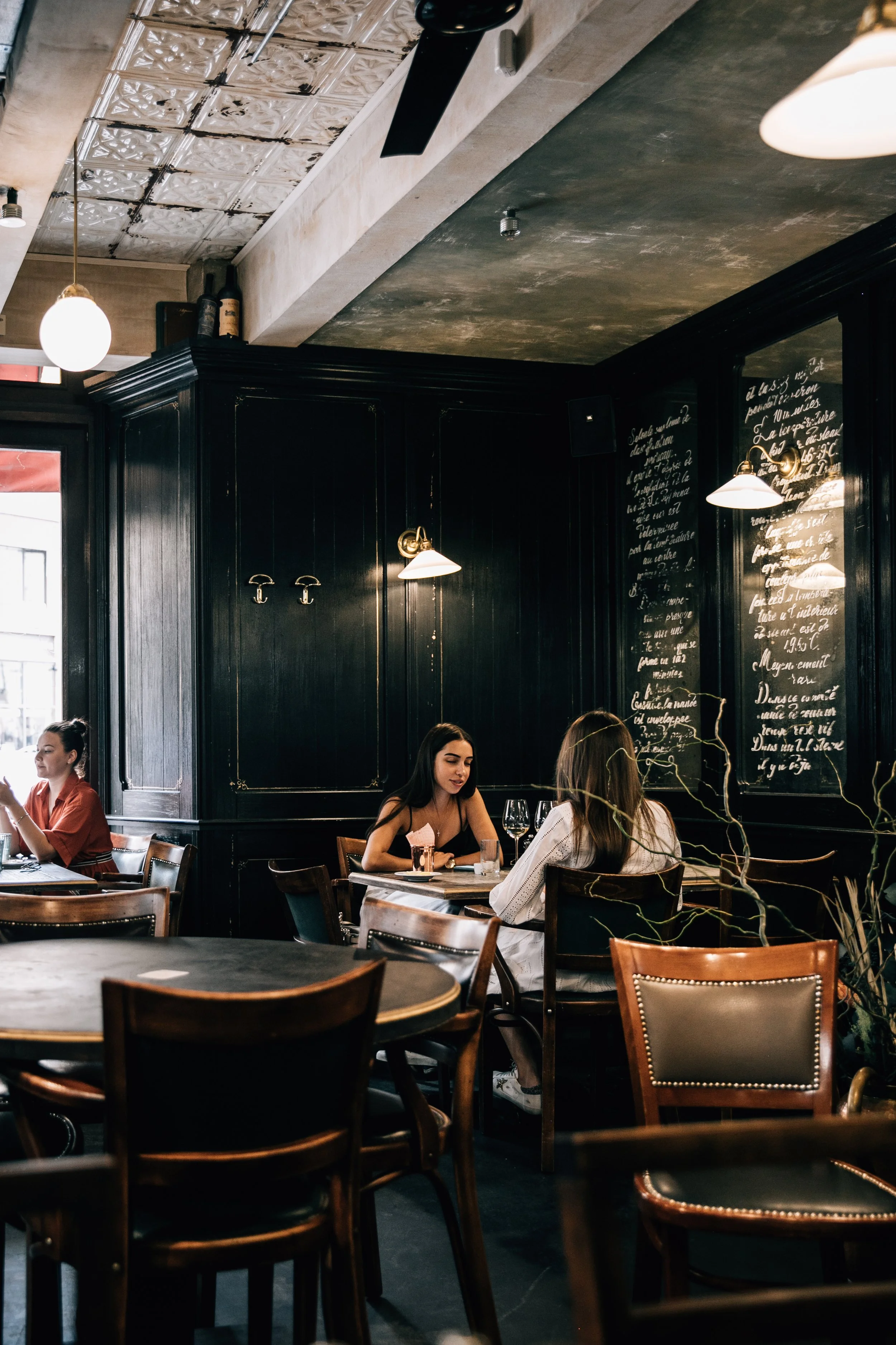 Interior design project by Belenko Design Studio (2019). Burger bar, Kyiv, Ukraine. Services: concept, interior design. Design features: vintage-inspired aesthetic, dark wood paneling, decorative lighting, curated furnishings.