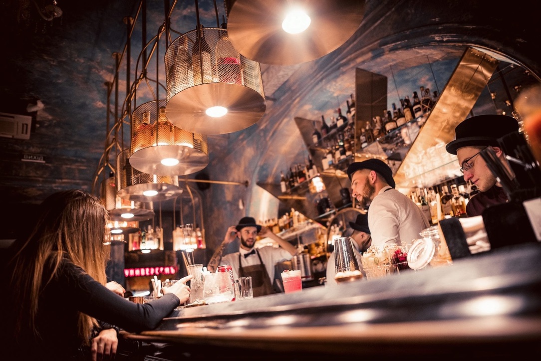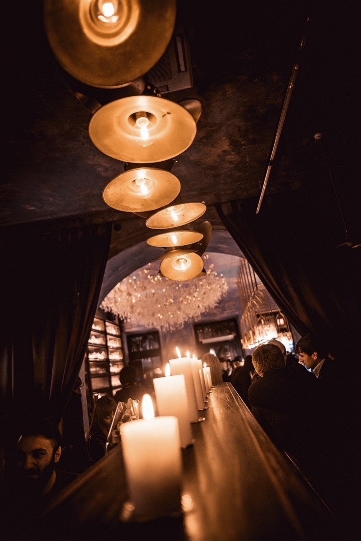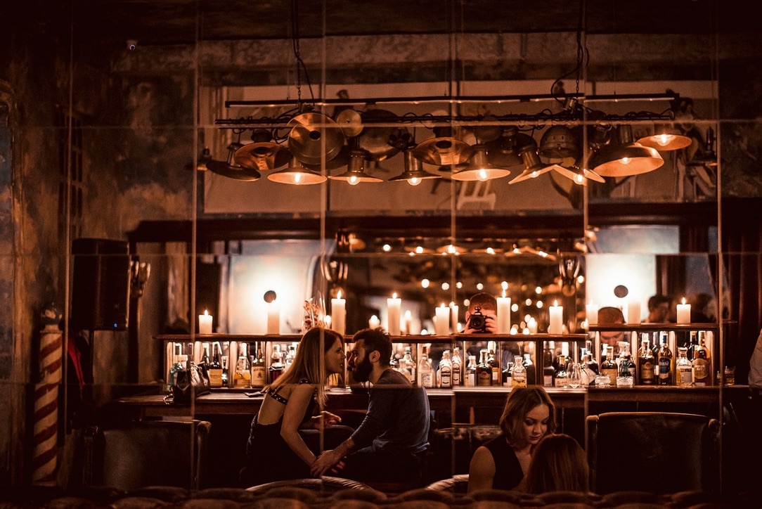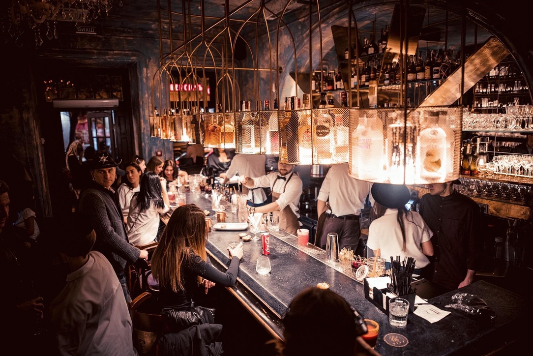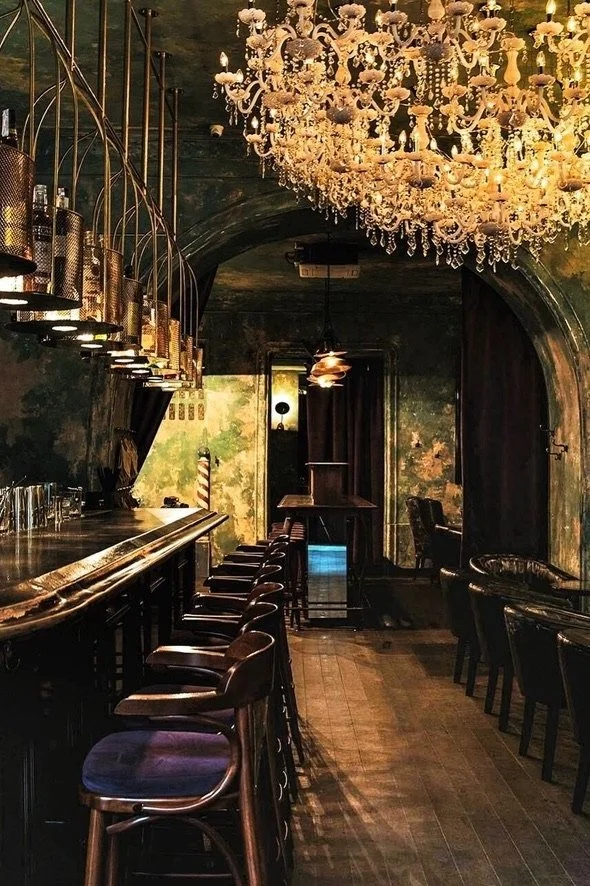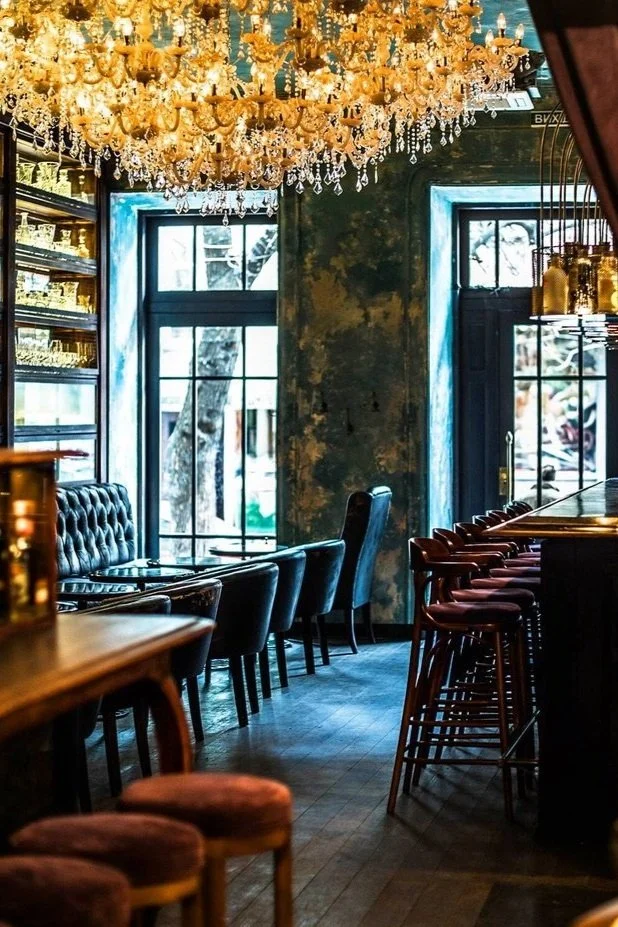 Interior design project by Belenko Design Studio (2016). Bar, Odesa, Ukraine. Services: concept, interior design. Design features: refined furnishings, atmospheric lighting, sophisticated social space.
