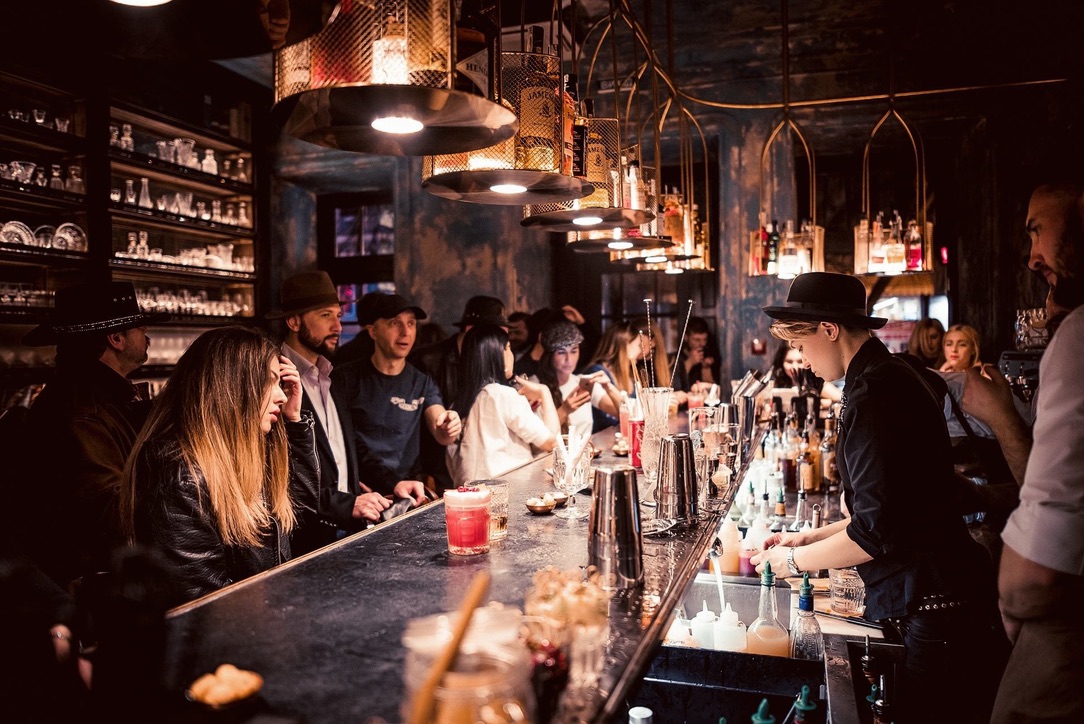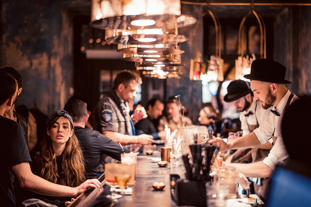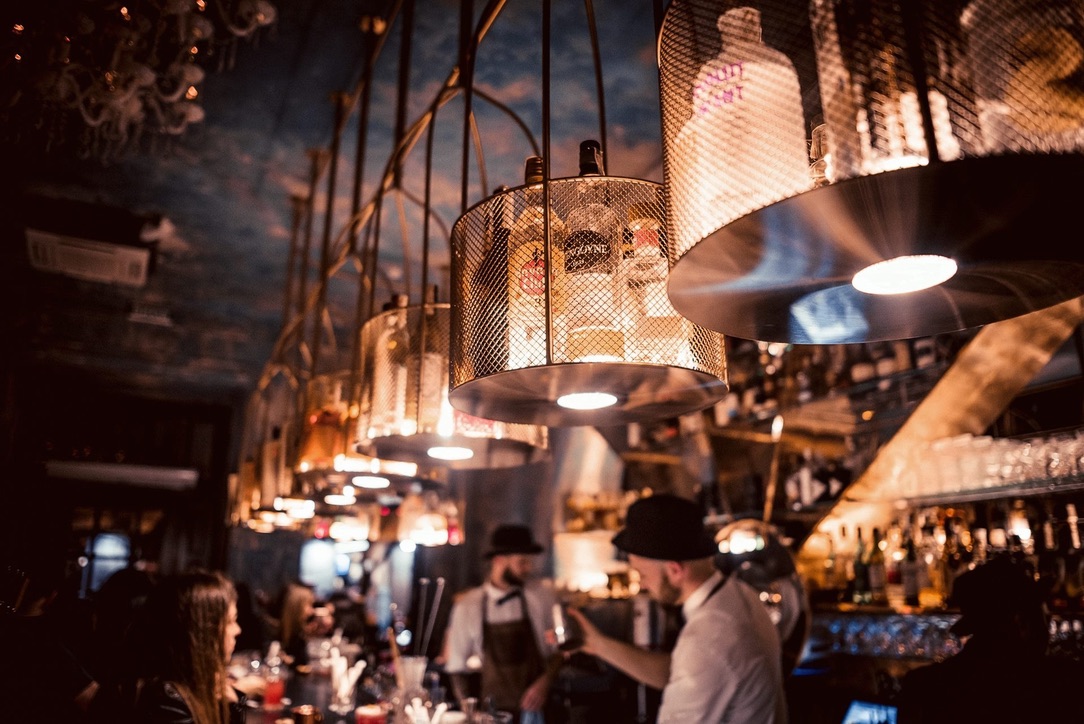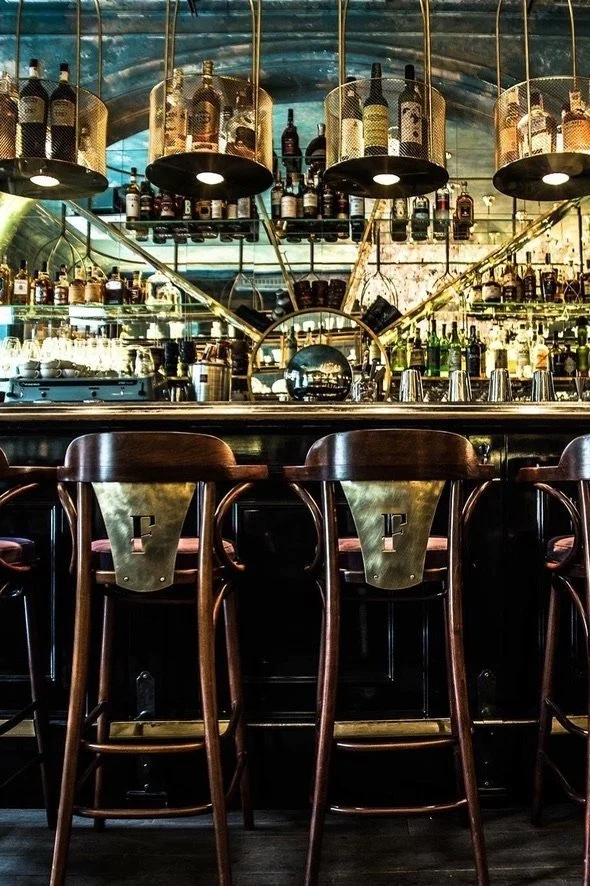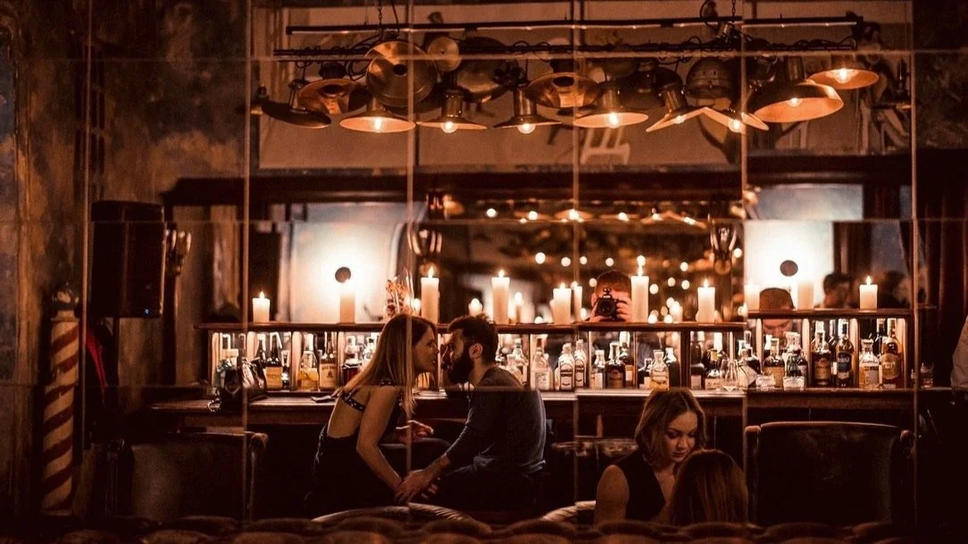 Interior design project by Belenko Design Studio (2016). Bar, Odesa, Ukraine. Services: concept, interior design. Design features: refined furnishings, atmospheric lighting, sophisticated social space.