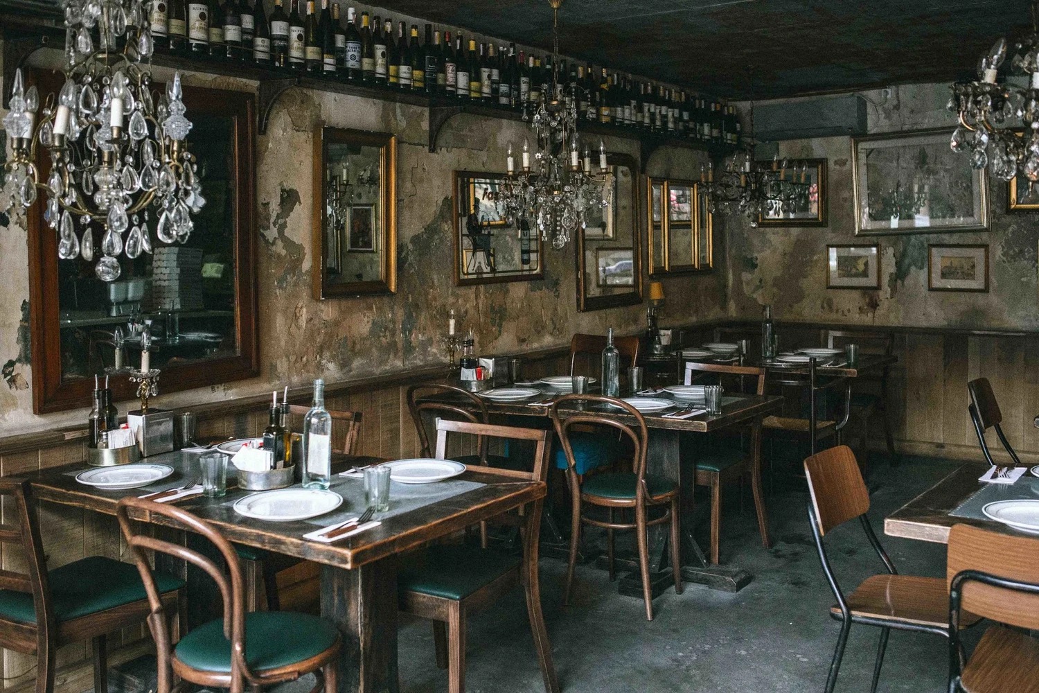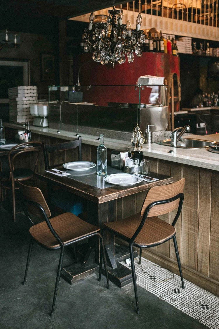 Interior design project by Belenko Design Studio (2020). Brooklyn-style pizzeria, Kyiv, Ukraine. Services: concept, interior design, decor. Design features: industrial-modern aesthetic, exposed brick elements, warm lighting, authentic New York atmosphere, casual dining comfort with urban aesthetics.